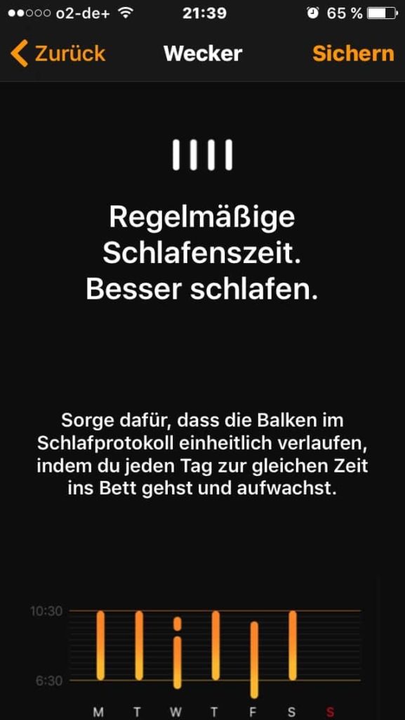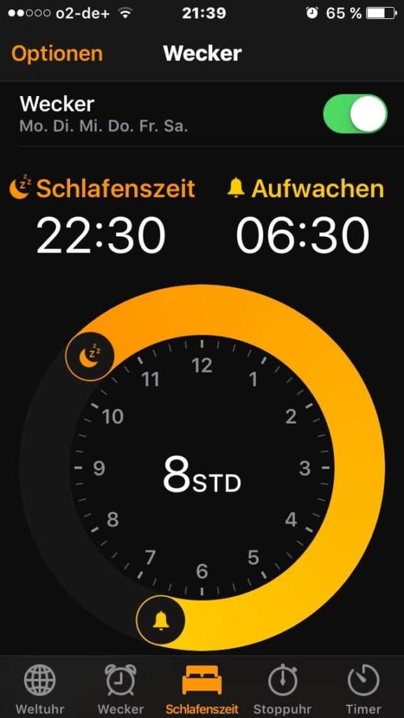 In der Uhr befindet sich nun ein neuer Tab, der als Schlafenszeit genannt wurde, der als eine Alternative zum traditionellen Wecker beschrieben werden könnte. Eigenschaft ermöglicht Ihnen, einen regelmäßigen Schlafzyklus zu setzen, mit dem Sie jeden Tag aufwachen werden. Es bietet auch eine Schlafanalyse.